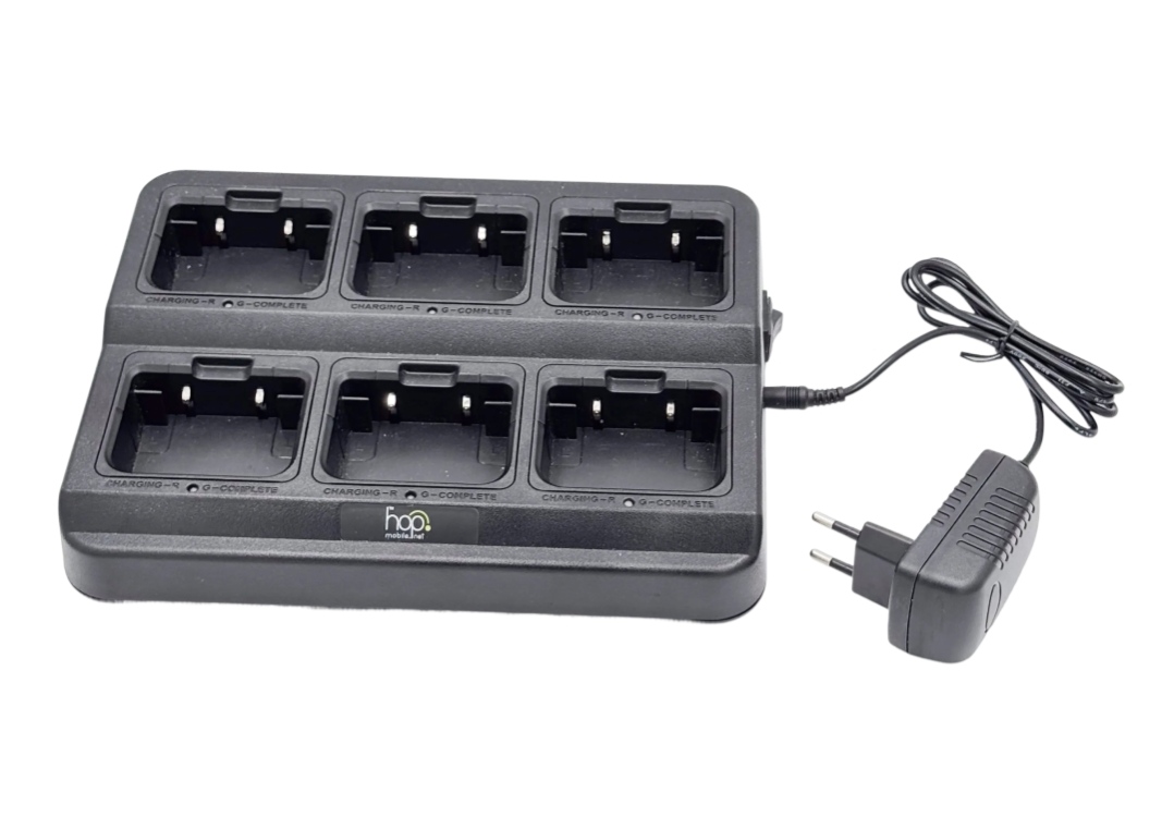 BASE RICARICA BATTERIE MULTICHARGER 6 SLOT, DISPONIBILE PER QUALSIASI TIPO E MODELLO DI RADIO HOP MOBILE